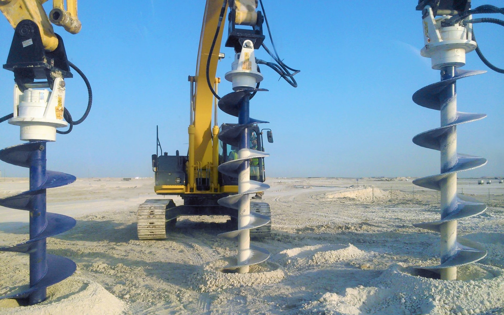 La gamme EBA des tarières hydrau liques vous permet de convertir votre pelle ou tractopelle en une foreuse, en changeant simplement l’attache ment. Ces tarières sont idéales pour le forage de trous peu profonds dans le sol tendre à compact, le gravats et la roche friable ayant une résistance à la compression jusqu’à 50 MPa. Pour le forage dans la roche plus dure, KEMROC a développé des outils de coupe spéciaux pour assurer une vitesse de forage plus élevée.