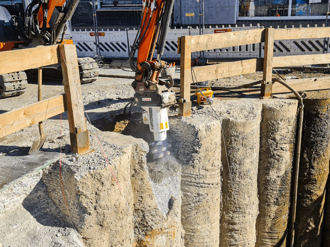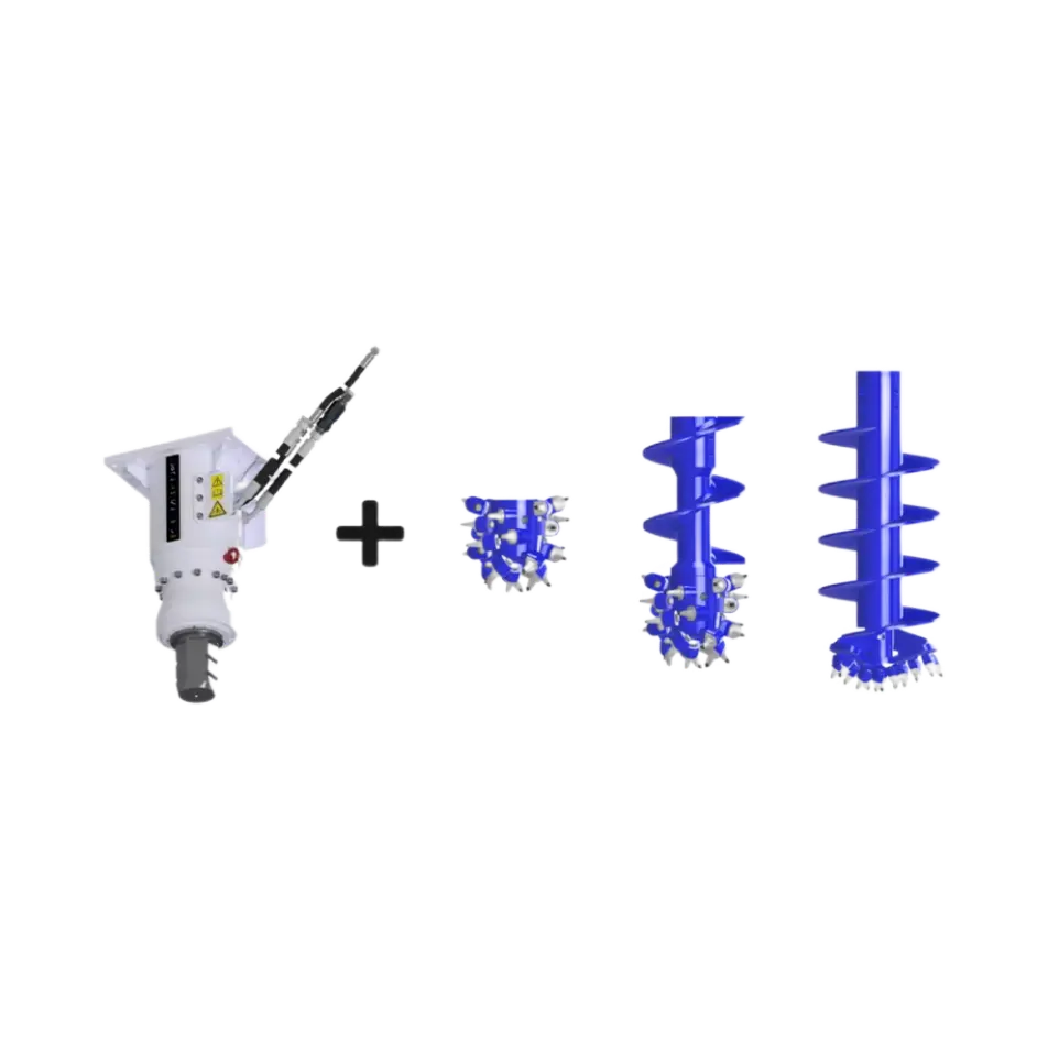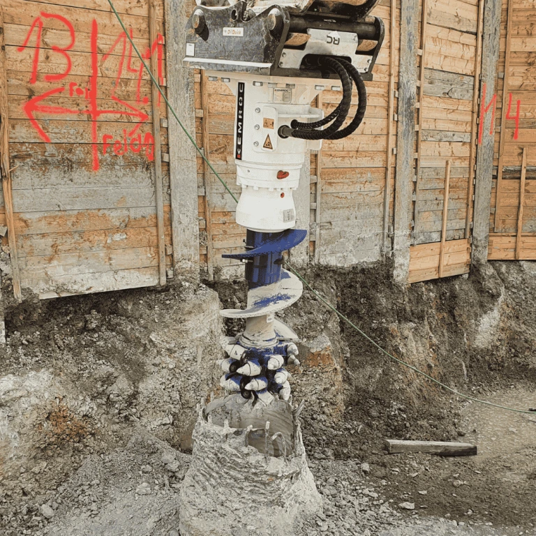 Conçu pour le forage de trous jusqu’à 1 500 mm de diamètre, l’accessoire de forage convient à des applications telles que l’élargissement de trous pour le battage de palplanches, le forage pour soutènement par poutres en I, les clôtures, l’installation de candélabres ainsi que le forage exploratoire pour les services de dépollution pyrotechnique.