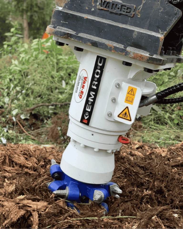 La tête de fraisage équipée de pics “dragon teeth” est parfaitement adaptée au broyage de souches, faisant de ces unités des outils polyvalents pour les applications de paysagisme et de travaux forestiers.